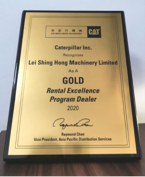 利星行機械東區租賃部在2020年9月的卡特彼勒租賃卓越計劃(Rental Excellence Program - Dealer Heavy Rents)獲得了第一塊租賃卓越計劃金牌,意義非凡。