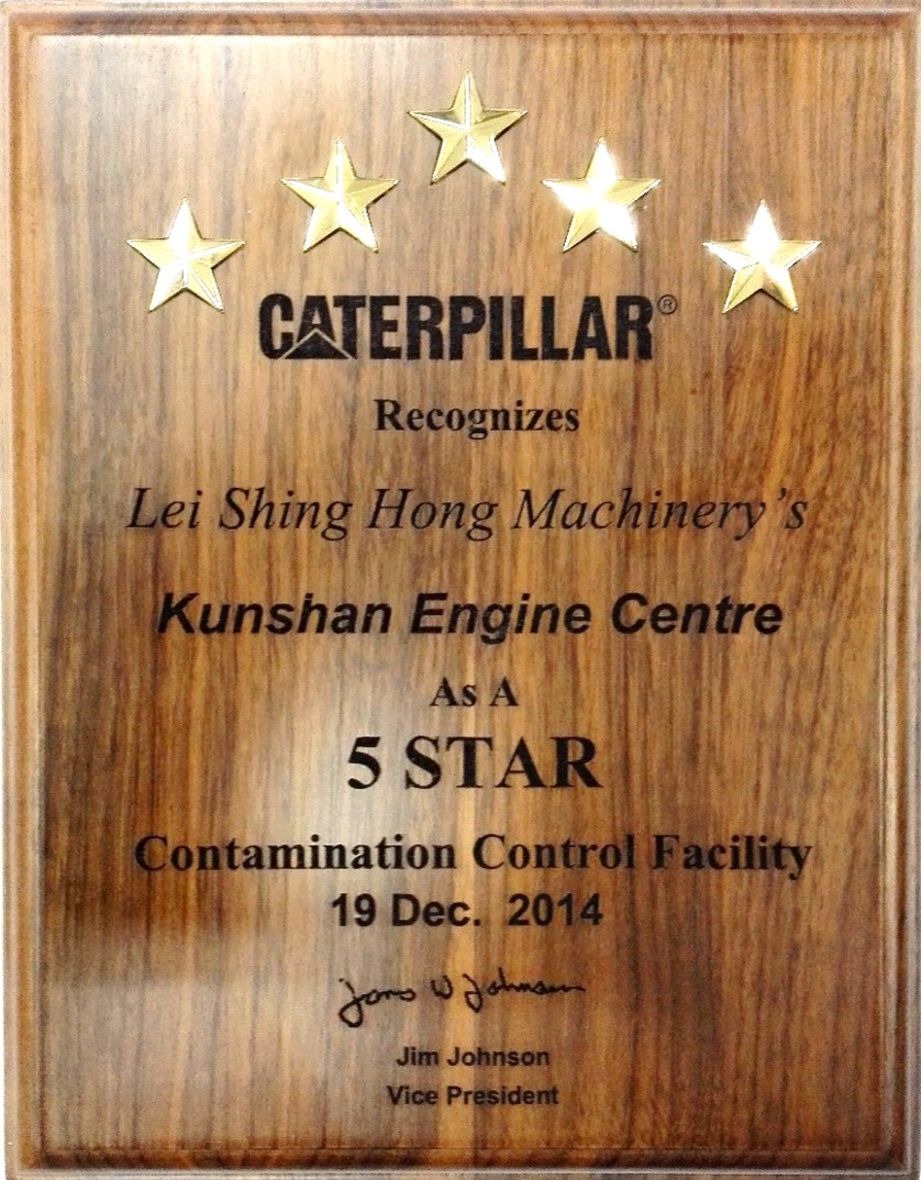 近日,經過卡特彼勒的嚴格審查,利星行機械發動機產品支持部昆山發動機車間榮獲卡特彼勒頒發的“五星級污染控制車間”榮譽稱號。2015年1月,卡特彼勒集團總裁Tom Pellette先生到訪利星行機械昆山總部,并將這一殊榮頒發給利星行機械集團首席執行官傅耀生先生。